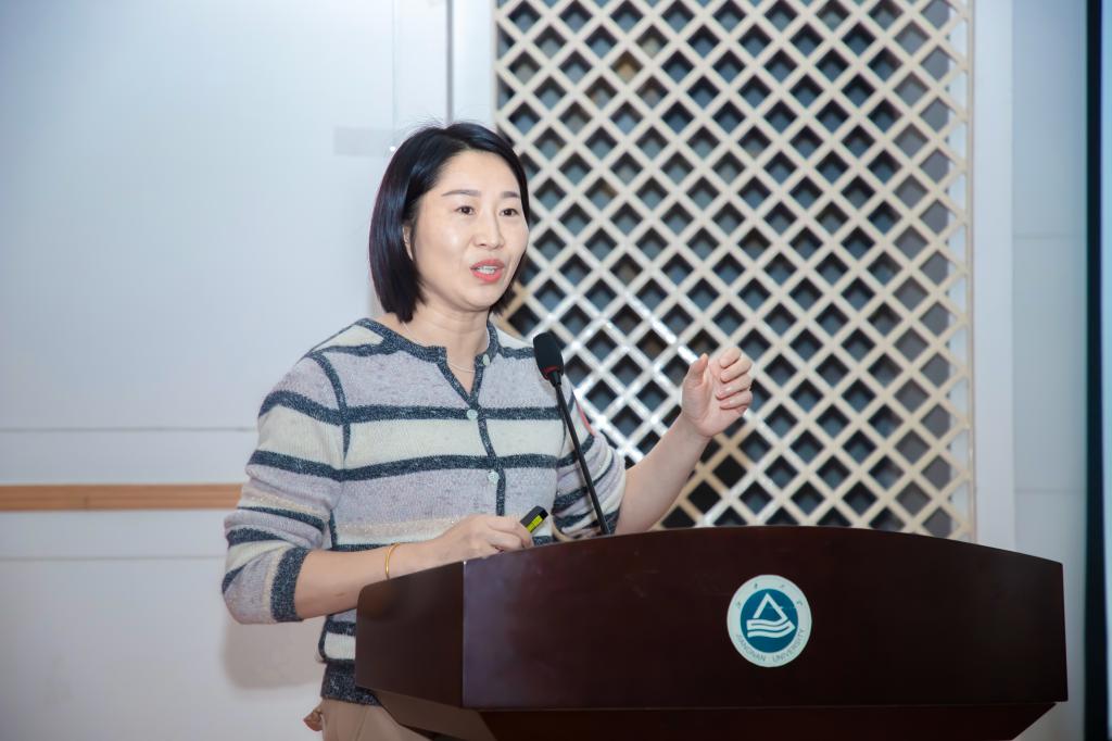 栾小丽作学院发展情况介绍。她指出,校友是学院建设发展的宝贵资源,希望通过无锡校友会的成立,让学院和校友之间建立起更加紧密的联系,共叙情谊,双向赋能,共同发展。