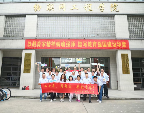 物联网工程学院2001级电气自动化专业四十多名校友毕业二十载后重返母校,共叙同窗情谊,见证母校发展。
